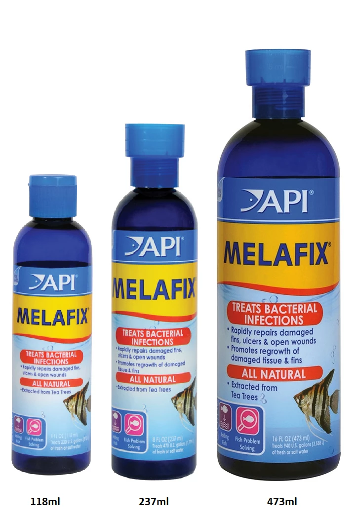 Melafix, heals open wounds abrasions, fin and tail rot, eye cloud, mouth fungus and promotes re-growth of damaged fin rays & tissue.