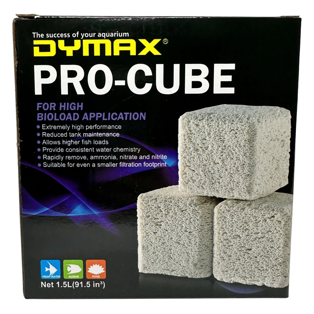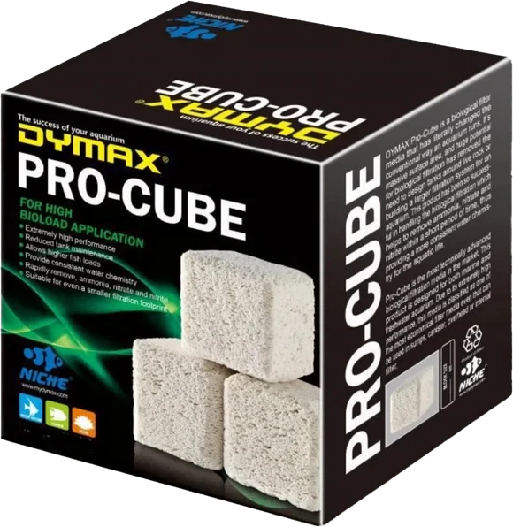 Dymax Pro-Cube is a biological filter media that has literally changed the conventional way an aquarium runs. Its massive surface area, and huge potential for biological filtration has removed the need to design tanks around live rock or building a larger filtration system for an aquarium. This product has been so successful in handling biological filtration which helps remove ammonia, nitrate, and nitrite within a short period of time, thus providing a more consistent water chemistry for aquatic life.