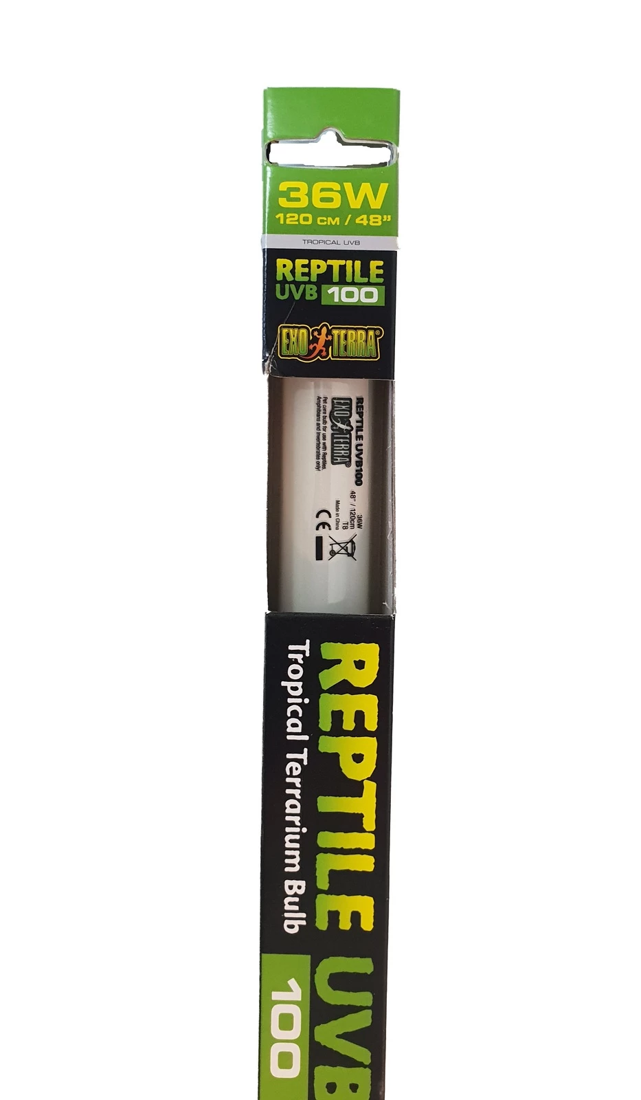 The Exo Terra Reptile UVB100 emits optimal levels of UVB, similar to that of shady environments such as rain forests or other tropical locations.