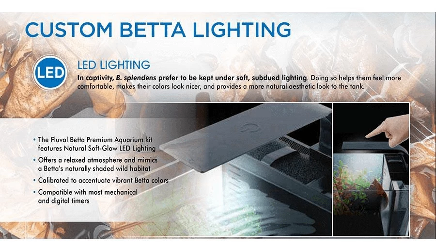 The Fluval Betta Aquarium Kit features Natural Soft-Glow LED Lighting.