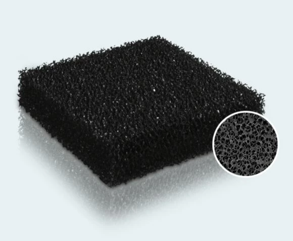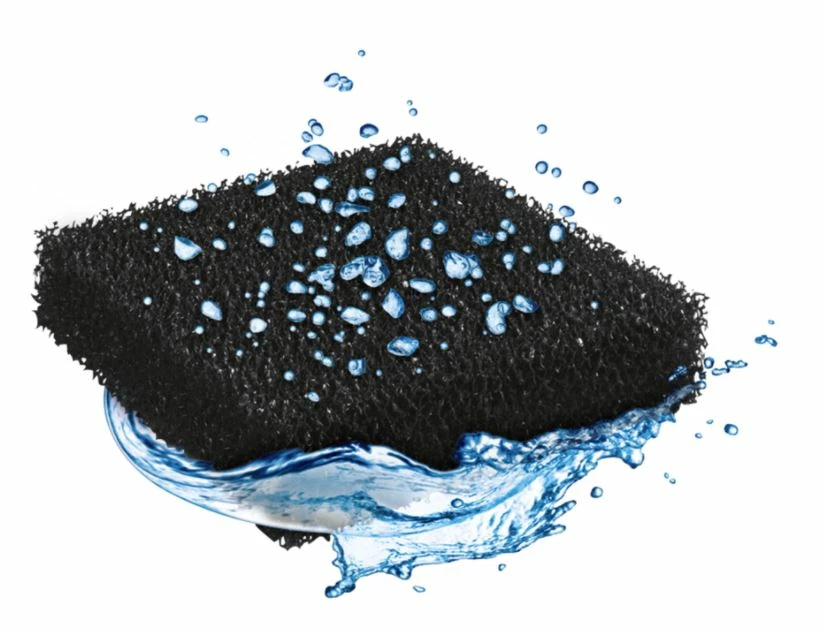 The fact that active charcoal in the form of a sponge is used guarantees even flow conditions for the filter medium, creating a very large and therefore highly effective surface.
