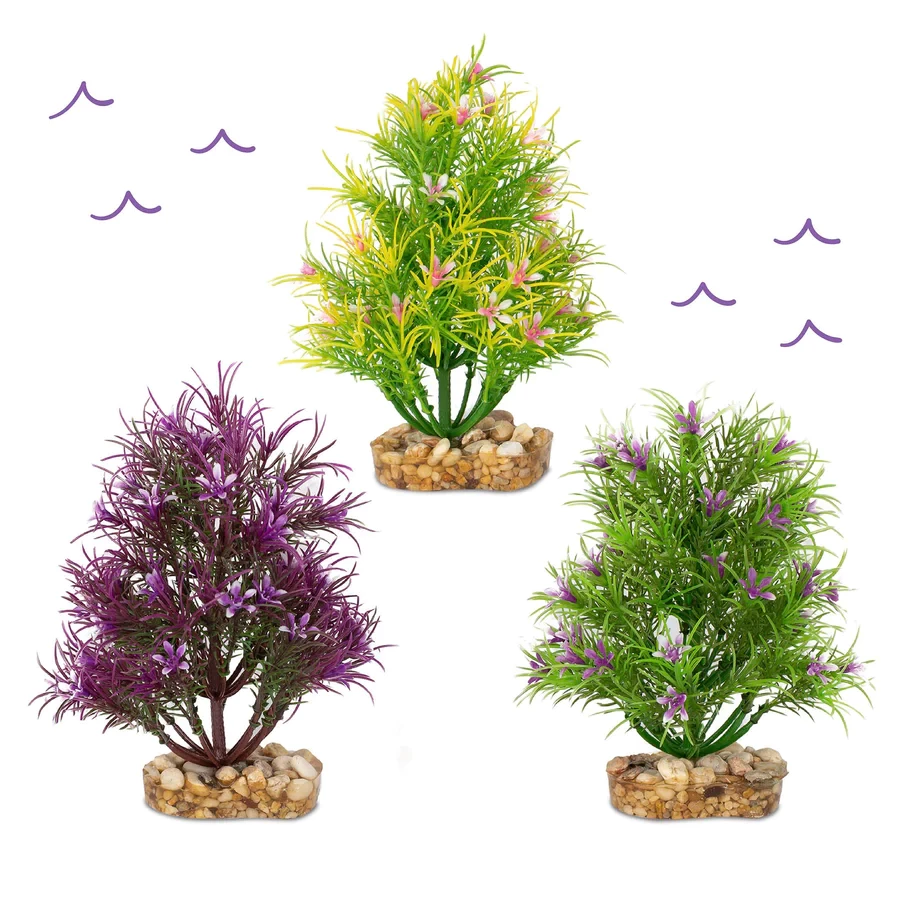 Kazoo Thin Leaf with Flowers Plastic Plants are available in yellow, green and purple, picked for you at random to add a pop of colour to your tank! These small ornaments are perfect for the foreground to add dimesion to your aquascape.