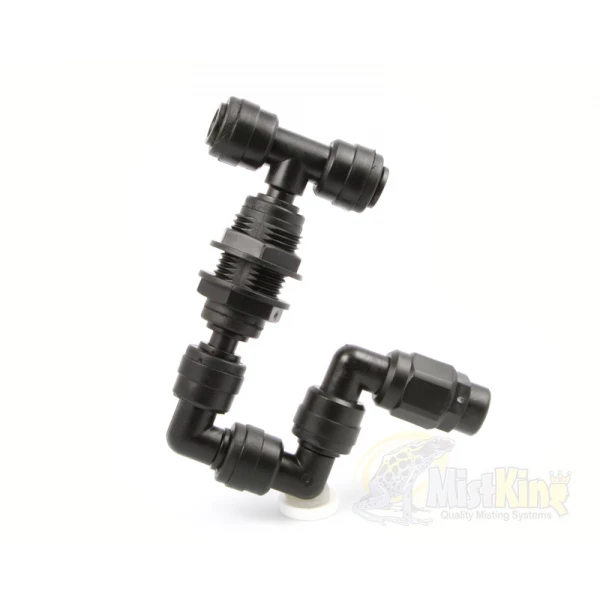 The assembly includes one misting nozzle, that can be used to provide humidity and cooling for a variety of applications, including reptile enclosures, greenhouses, and outdoor patios.