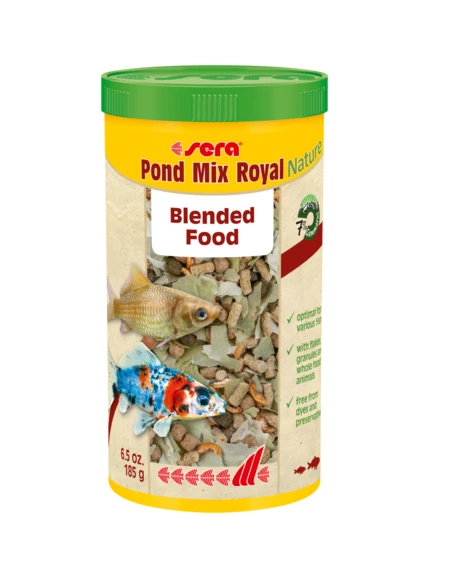 sera Pond Mix Royal the staple food consisting of carefully processed flakes, granules and whole Gammarus for feeding in ponds with various fish throughout the year.