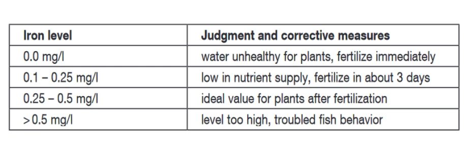 The ideal iron concentration immediately after fertilization is 0.25 – 0.5 mg/l.
