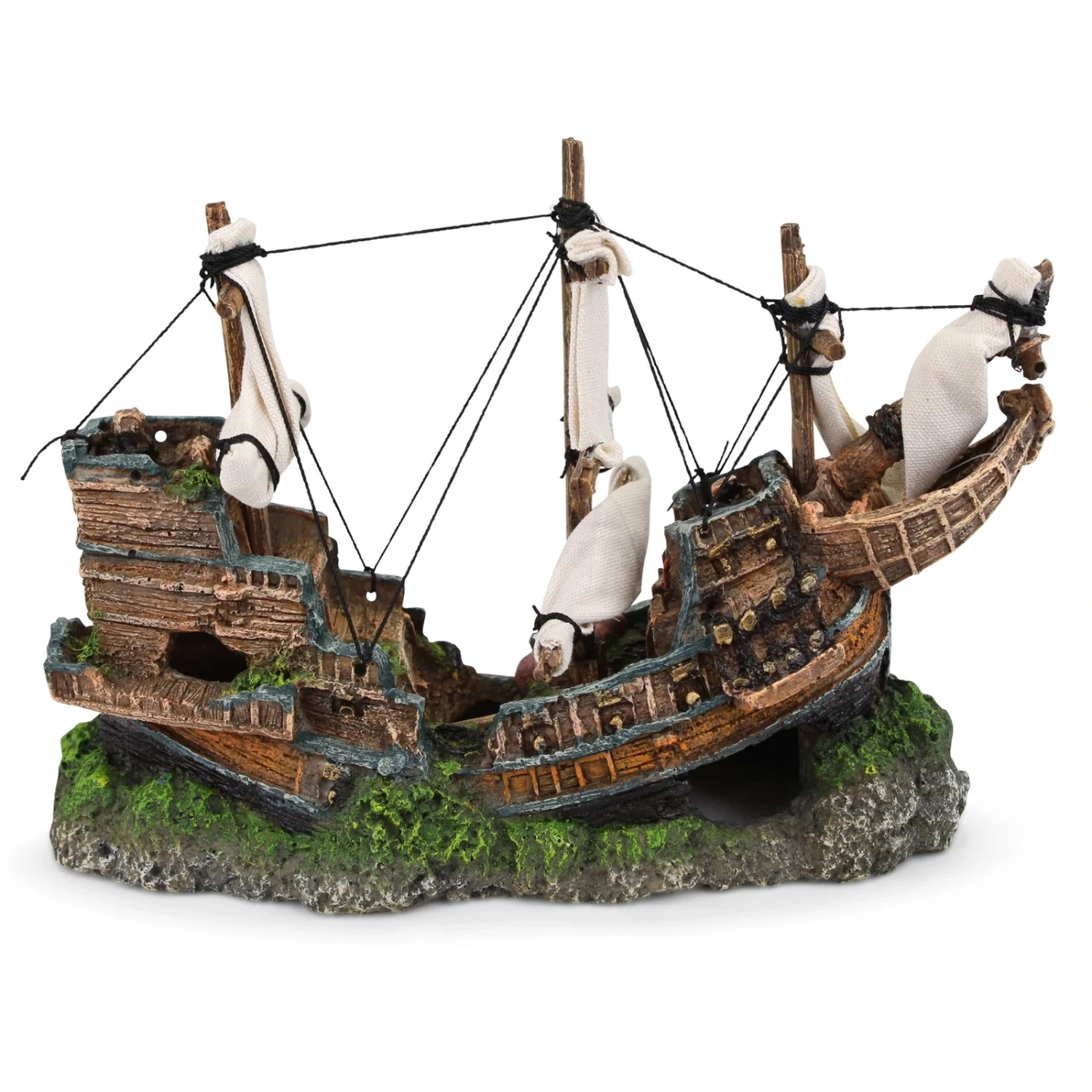 The Kazoo Shipwreck With Sail is a stunningly detailed aquarium ornament that will add a touch of pirate adventure to your underwater world.