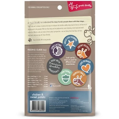 Yours Droolly Chicken and Sweet Potato Treats are a delicious and healthy snack for dogs of all ages.